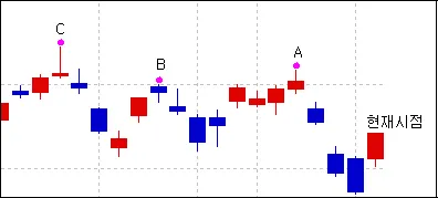 기준봉의 우측봉들의 값보다 큰 것을 말하는데 이를 그림으로 표시하면 다음과 같다