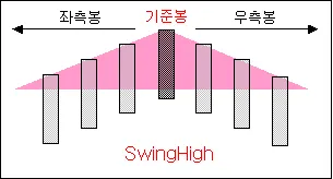 SwingHigh는 기준봉의 값이 기준봉의 좌측봉들의 값보다 크거나 같고