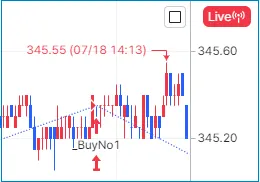차트에 적용된 전략식에서 매매 신호가 발생하면 메시지를 출력합니다.