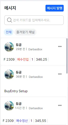 차트에서 상단의 메시지 전송 기능이 활성화되어 있어야 합니다.