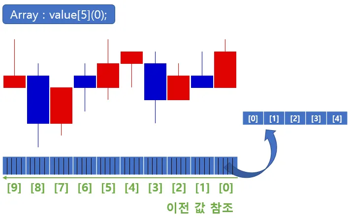 이전값을 참조할 때는 변수명 뒤에 [ ]를 붙이고 봉수를 지정합니다.