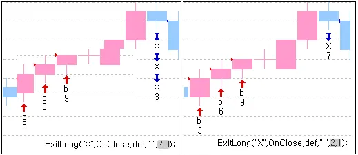 매수포지션 청산 | ExitLong("신호명", 신호타입, 감시가격, "진입명”, 청산수량, 수량옵션) |