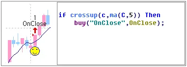 OnClose와 AtMarket은 봉완성시에 신호를 발생하는 타입입니다.