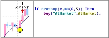 AtMarket은 다음봉시가를 리포트 진입/청산 가격으로 사용하고 다음봉 시가에 신호를 표시합니다. 별도로 감시가격은 설정하는 타입이 아니므로 감시가격은 Def로 지정합니다.