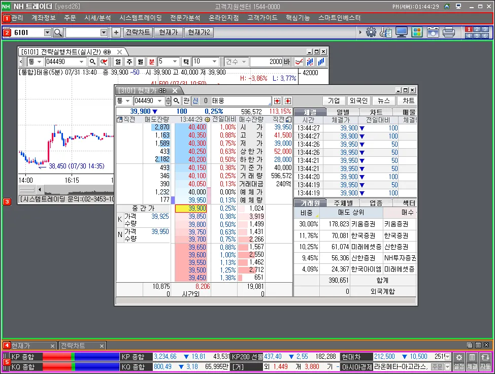 프로그램은 '메뉴바, 메인툴바, 화면조회부, 화면목록바, 티커바'로 구성되어 있습니다.