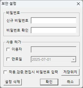 적용,검증,편집시 비밀번호 입력 : 체크하면 적용 시 항상 비밀번호를 입력해야 합니다.