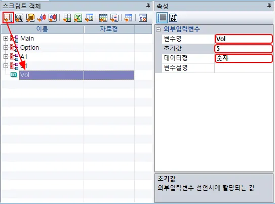 스크립트 객체화면 설정