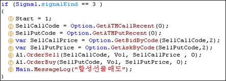 ※ Buy신호시 저장된 콜옵션 종목코드는 현재 주문에서 주문종목코드로 이용하고 이후