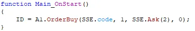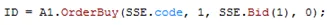 ID = A1.OrderBuy(SSE.code, 1, SSE.Ask(2), 0);