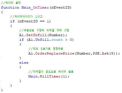 예제3에서는 주문후 일정 시간 경과 후에 정정주문을 구현하는 방법을 통해
