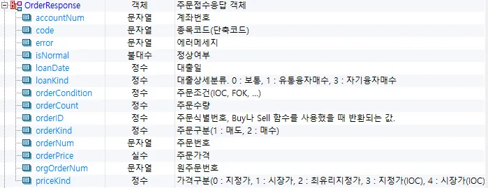 Main객체의 OnOrderResponse 이벤트는 주문응답이 발생하면 호출되는 이벤트입니다.