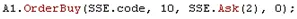 A1.OrderBuy(SSE.code, 10, SSE.Ask(2), 0);