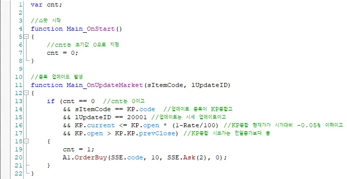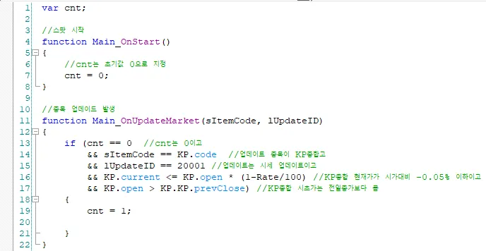 && KP.current <= KP.open * (1-Rate/100) //KP종합 현재가가 시가대비 -0.05% 이하이고