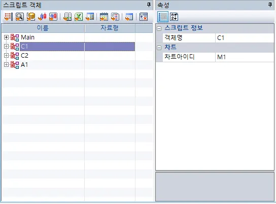 스크립트 객체설정 화면에 종목객체는 추가하지 않습니다