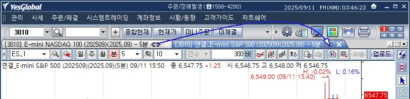 먼저 연결하고자 하는 화면의 타이틀탭에서 종목연동버튼
