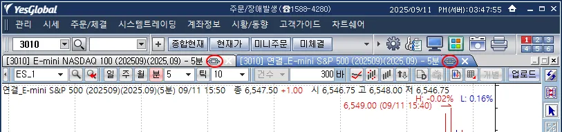 차트화면에서 주문체결상세 화면으로는 연동이 되지 않습니다.