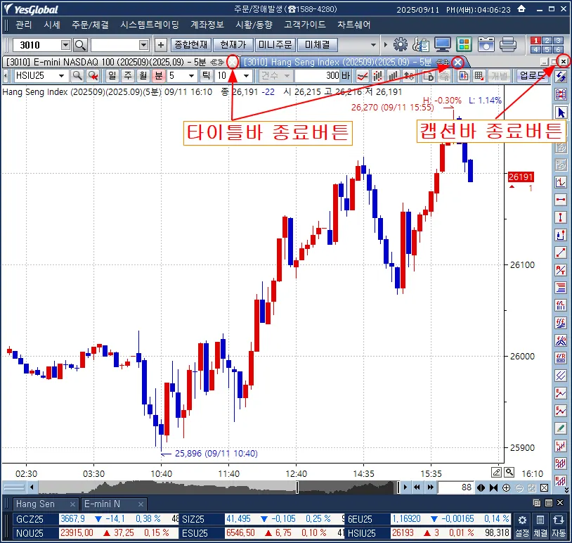 종료버튼화면의 타이틀탭의 종료버튼은 해당 화면만을 종료하고