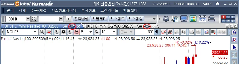왼쪽 차트에서에서 종목을 변경하면 오른쪽 차트창의 종목도 변경되는 것을 확인할 수 있습니다.