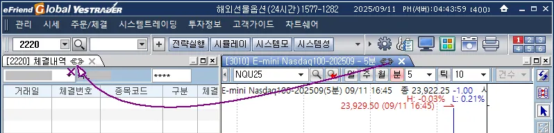 차트화면에서 주문체결상세 화면으로는 연동이 되지 않습니다.