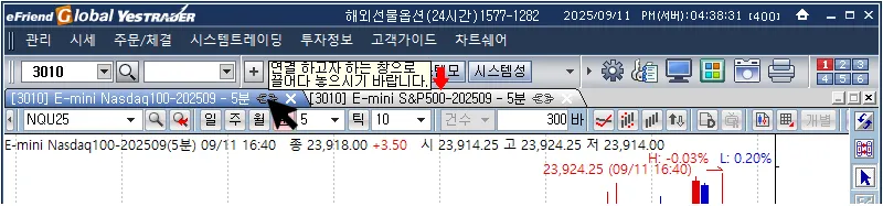 (이미 종목연동이 되어 있는 경우 연결된 창과의 연결 상태를 보여줍니다.)2.
