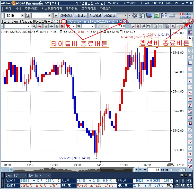 종료버튼화면의 타이틀탭의 종료버튼은 해당 화면만을 종료하고