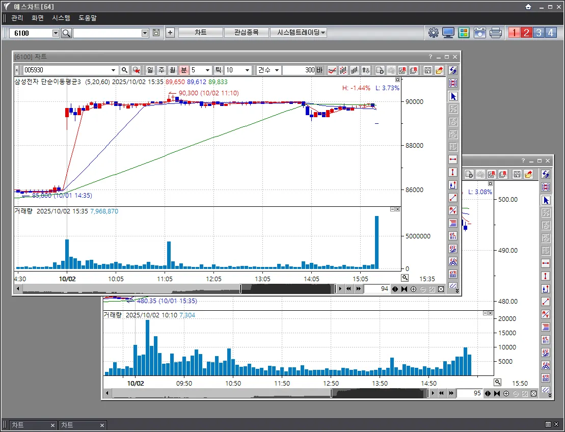 이 경우 많은 창을 띄우면 화면 배치가 복잡해져서 분석에 어려움을 겪게 됩니다.