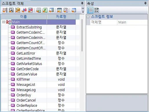 스크립트의 생성과 전략을 작성하는데 필요한 기본 Method들을 제공하는 객체입니다. 기본으로 제공되는 객체이고 속성화면에 설정할 내용은 없습니다.