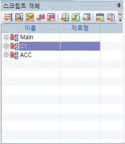 스크립트 객체화면 설정은 예제1과 같습니다.