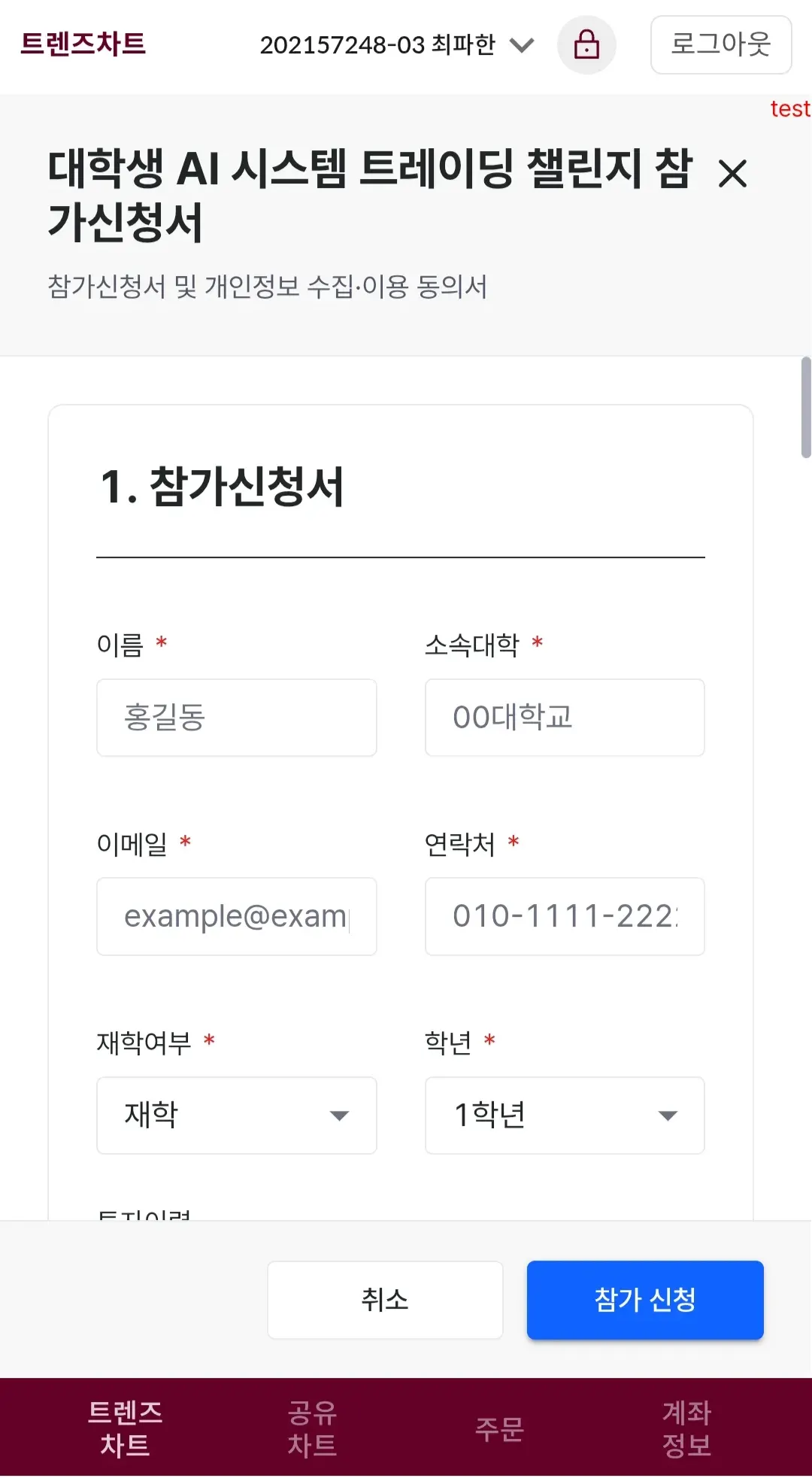์ฐธ๊ฐ ์ ์ฒญ์๋ฅผ ์์ฑํด์ฃผ์ธ์