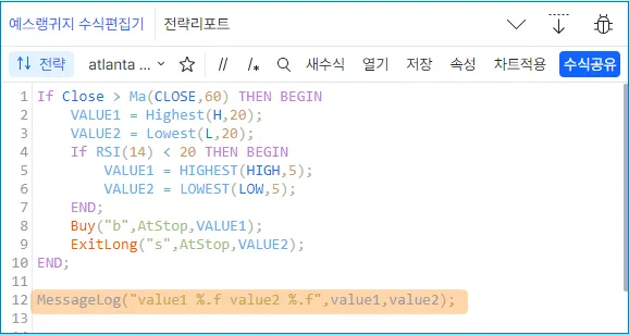 (수식에서 MessageLog함수로 지정한 값들이 출력됩니다.) |