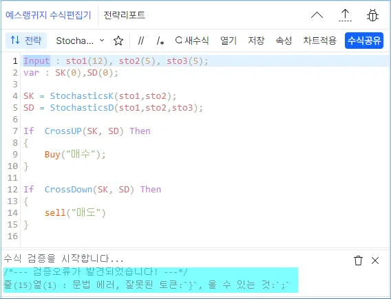 (수식을 저장하거나 차트적용하면 자동으로 문법검증이 실행됩니다.) |