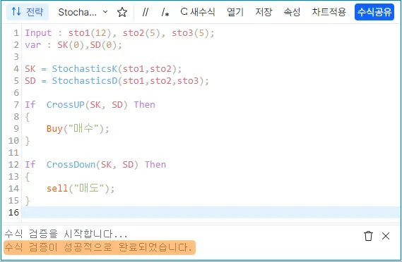수식검증은 수식을 작성후 [저장]이나 [차트적용]을 하면 자동으로 실행 되며