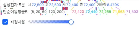 거래량 : 선택/해제로 거래량을 보이거나 숨길 수 있습니다.
