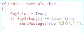차트에 적용된 전략식에서 신호가 발생하면 메시지를 출력합니다.