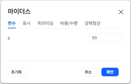 변수탭은 수식에서 지정한 외부변수의 값을 변경할 수 있습니다.