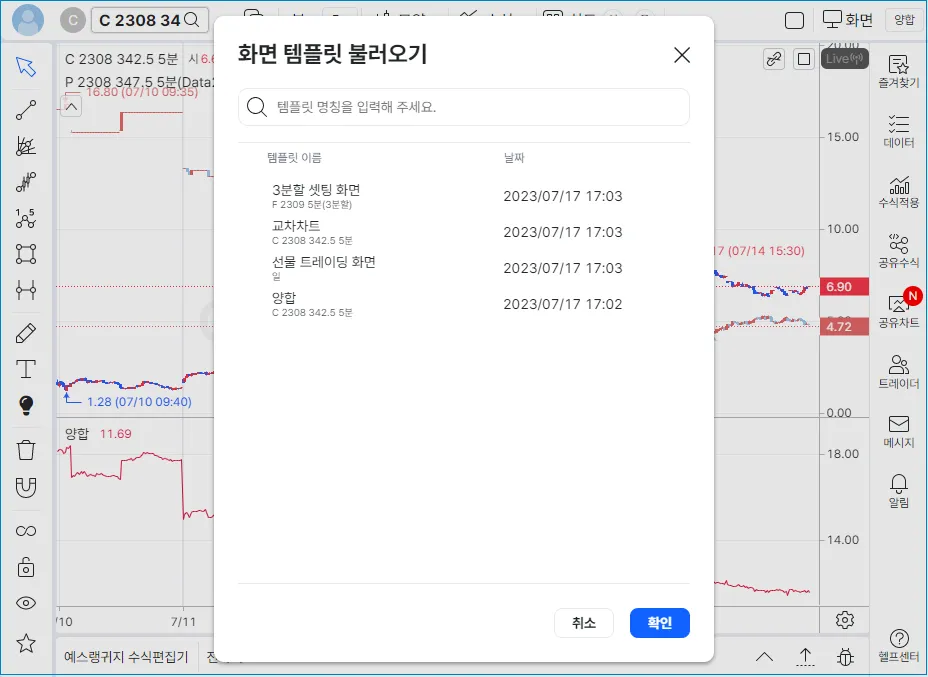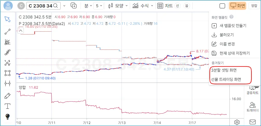 거래 종목이나 상황에 따라 이용하는 화면 셋팅을 저장하면