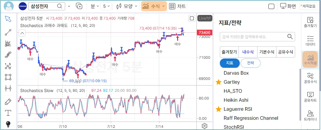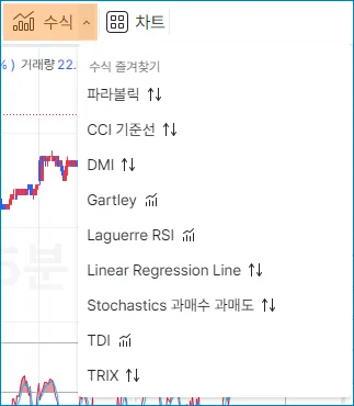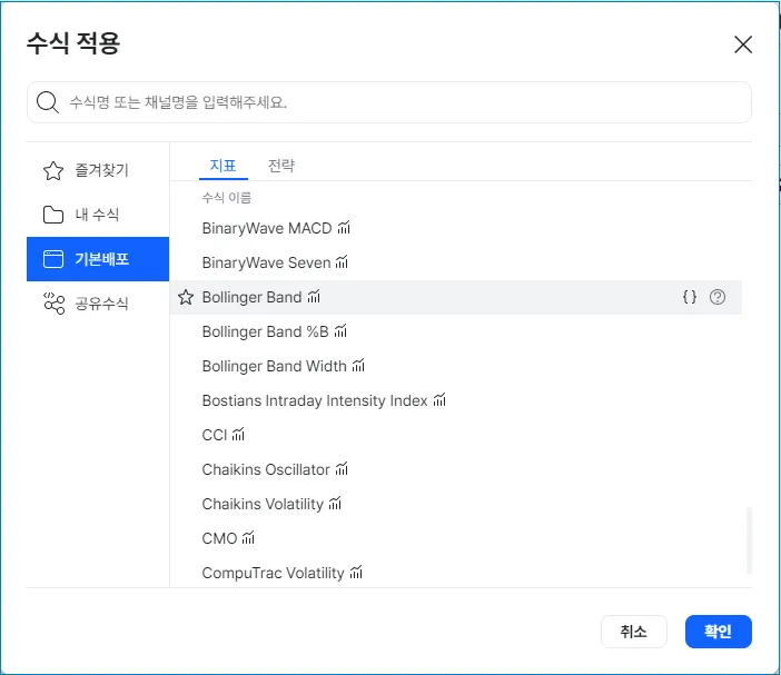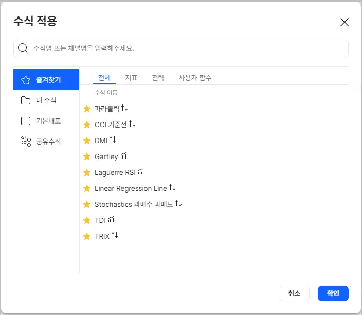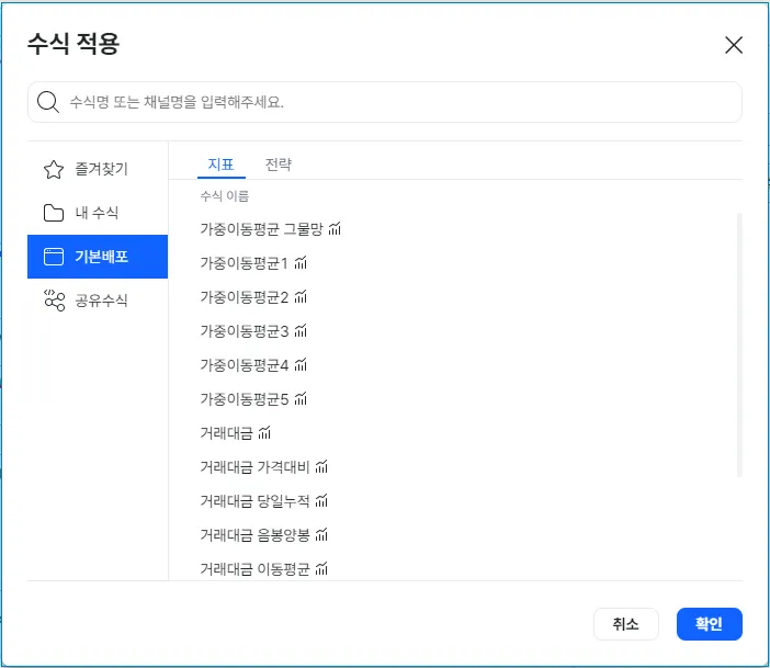 수식적용 화면의 즐겨찾기탭에서도 찾을 수 있어 자주 사용하는 지표나 전략을