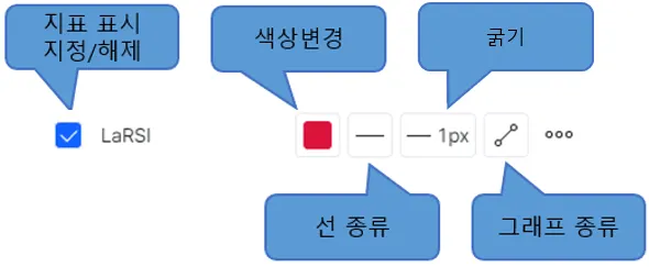 지표표시 여부,색상, 굵기, 그래프 종류 변경