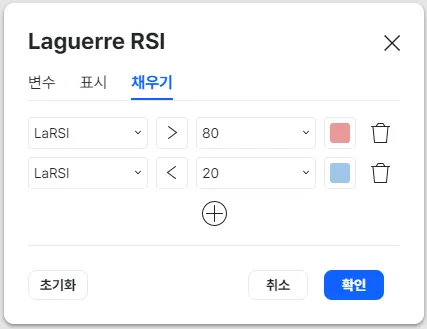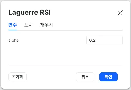 변수값을 변경 후 확인버튼을 클릭하면 변경된 값으로 지표가 적용됩니다.