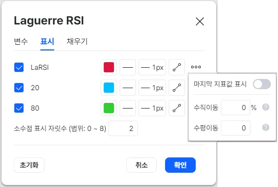 마지막 지표값 표시를 선택하면 차트의 Y축에 지표의 현재값이 표시됩니다.