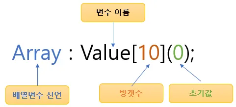 Array : 변수명[방갯수](초기값), 변수명[방갯수](초기값);