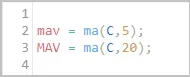 mav2 = ma(C, longPeriod); //변수에 값 저장 후