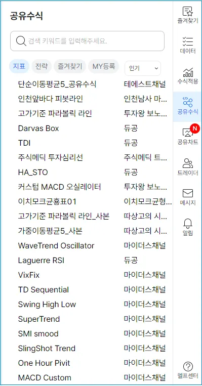 공유수식 은 트레이더들이 수식 내용을 공개해서 공유한  수식들입니다.