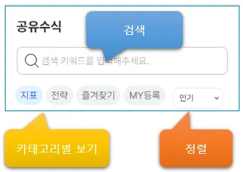 키워드를 지정해 공유수식을 검색할 수 있습니다.