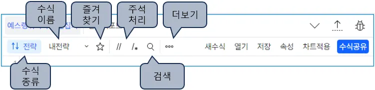 수식은 지표식, 전략식, 사용자함수 중 선택해서 작성할 수 있고